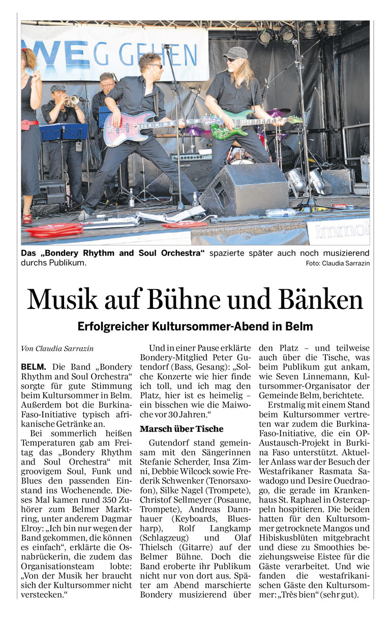 Konzert beim Belmer Kultursommer am 17. Juli 2015 (Neue Osnabrücker Zeitung) |