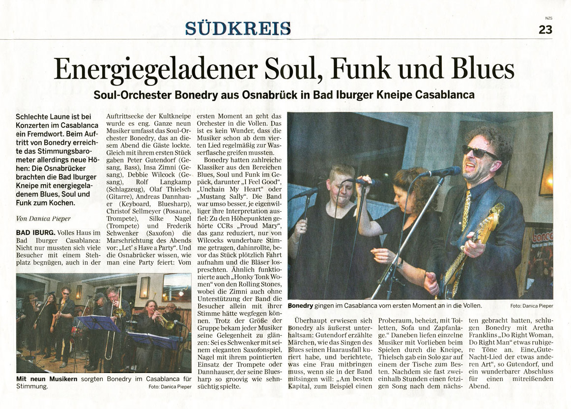Konzert im Casablanca in Bad Iburg am 19. Februar 2016 (Neue Osnabrücker Zeitung) |