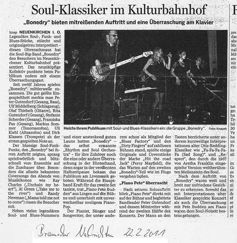 Konzert im Kulturbahnhof in Neuenkirchen-Vörden am 19. Februar 2011 (Bramscher Nachrichten) |