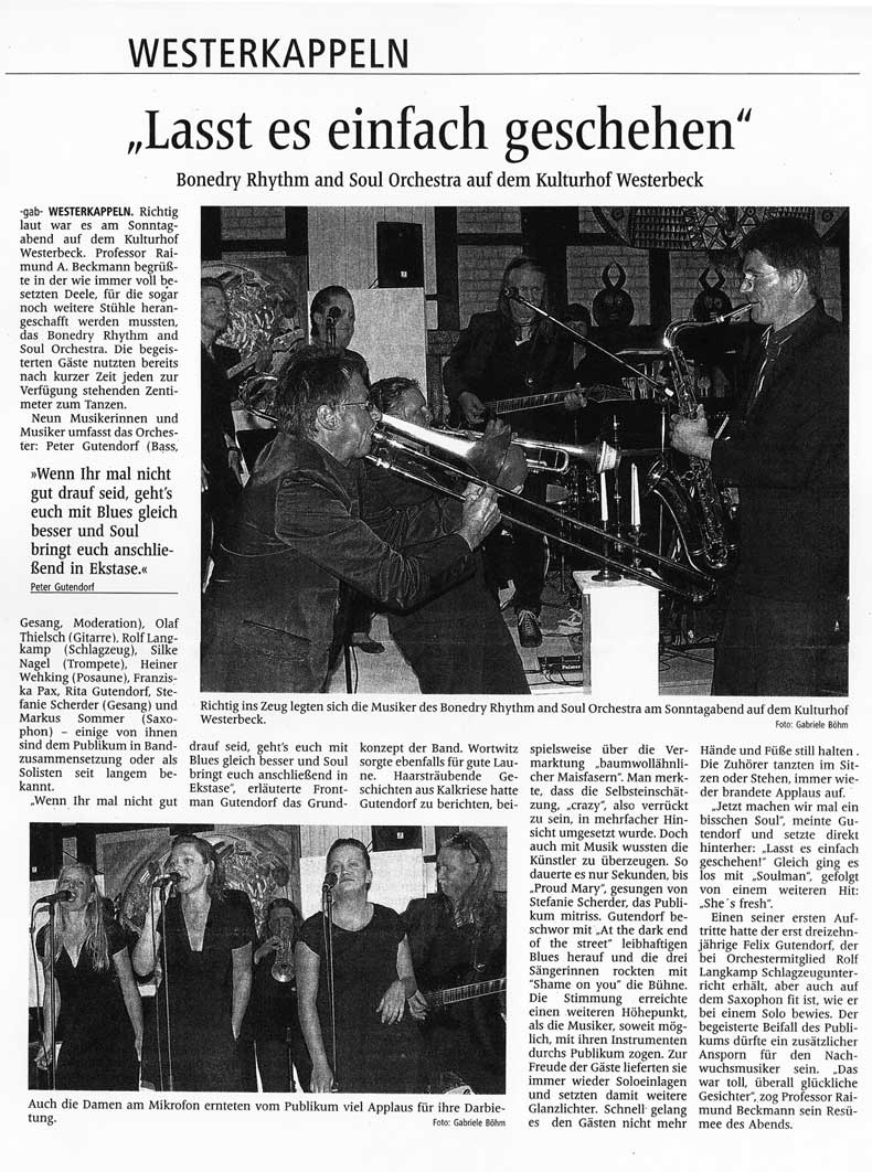 Konzert auf dem Kulturhof Westerbeck in Westerkappeln am 14. August 2011 (Westfälische Nachrichten) |